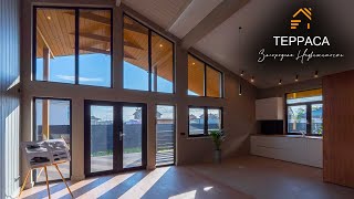 Окна и двери – панорамные. 2-х камерные стеклопакеты с двойной ламинацией и морозостойким профилем.