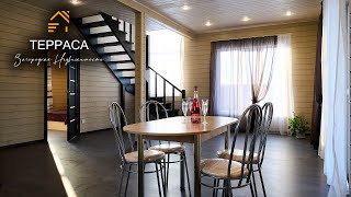 1 этаж – кухня-гостиная с выходом на террасу, изолированная комната, прихожая, котельная, с/у.