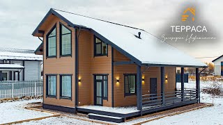 1 Этаж – просторная кухня-гостиная, выход на крытую террасу с покрытием террасной доской, изолированная комната, с\у, прихожая.